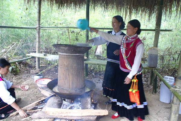 玉米稀飯是傈僳族傳統(tǒng)的風(fēng)味食品之一,將脫殼的玉米粒放入土鍋或銅鍋中滲水用栗柴火煮熟而成,特點(diǎn)是噴香撲鼻、解渴、去暑,配料多以各種蔬菜、豆類為主,若加煮一小塊臘肉或火腿則味更香、飯更可口,是傈僳族招待貴客的食品之一。