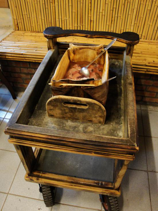 阿美人有一種美味的麥飯石火鍋,將燒得滾燙的麥飯石投入盛有魚(yú)、肉、菜等的竹筒或檳榔鞘殼中,利用石塊的溫度將食物燙熟后食用,味道鮮美且極富營(yíng)養(yǎng),且阿美人會(huì)煎炒、油炸。