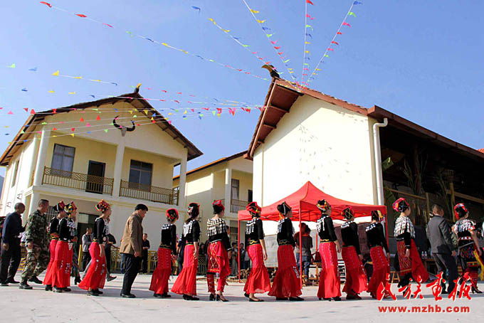 在簡單的入住儀式上,到場的梁河縣領導為拱母新村村民發(fā)放了象征著開啟新生活的“鑰匙”。梁河縣信用聯(lián)社還向拱母新村捐贈5000元。村民與周邊的各族群眾載歌載舞,表達著搬入新居的歡樂。
