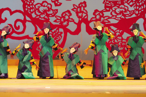 達(dá)斡爾族有語(yǔ)言沒(méi)有文字,然而在《神奇的達(dá)斡爾》演出現(xiàn)場(chǎng),觀眾卻能夠感受到演員通過(guò)聲音和肢體語(yǔ)言記錄下來(lái)的活的文字,并且重新思考非物質(zhì)文化遺產(chǎn)的意義所在。近兩個(gè)小時(shí)的演出,觀眾對(duì)達(dá)斡爾族的非物質(zhì)文化遺產(chǎn)有了直觀的感受:達(dá)斡爾族搖籃,它的制式體現(xiàn)了達(dá)斡爾人對(duì)生命的思考和對(duì)自然的尊重;哈尼卡,達(dá)斡爾族傳統(tǒng)的剪紙藝術(shù),伴隨著金色的童年,充實(shí)著達(dá)斡爾人色彩斑斕的心靈世界;達(dá)斡爾族頸力賽,勞動(dòng)之余一項(xiàng)普及性民間傳統(tǒng)體育競(jìng)技運(yùn)動(dòng),給人們平常的生活帶來(lái)無(wú)窮的樂(lè)趣——它們,都于2007年被列入第一批內(nèi)蒙古自治區(qū)非物質(zhì)文化遺產(chǎn)保護(hù)名錄。不僅如此,曲棍球(達(dá)斡爾語(yǔ)為“波依闊”,達(dá)斡爾族人喜愛(ài)的民間傳統(tǒng)體育項(xiàng)目)、魯日格勒(達(dá)斡爾族民間舞蹈,多表現(xiàn)狩獵生活和勞動(dòng)場(chǎng)面)、烏春(達(dá)斡爾族特有的說(shuō)唱藝術(shù))還被列入第一批國(guó)家級(jí)非物質(zhì)文化遺產(chǎn)保護(hù)名錄。