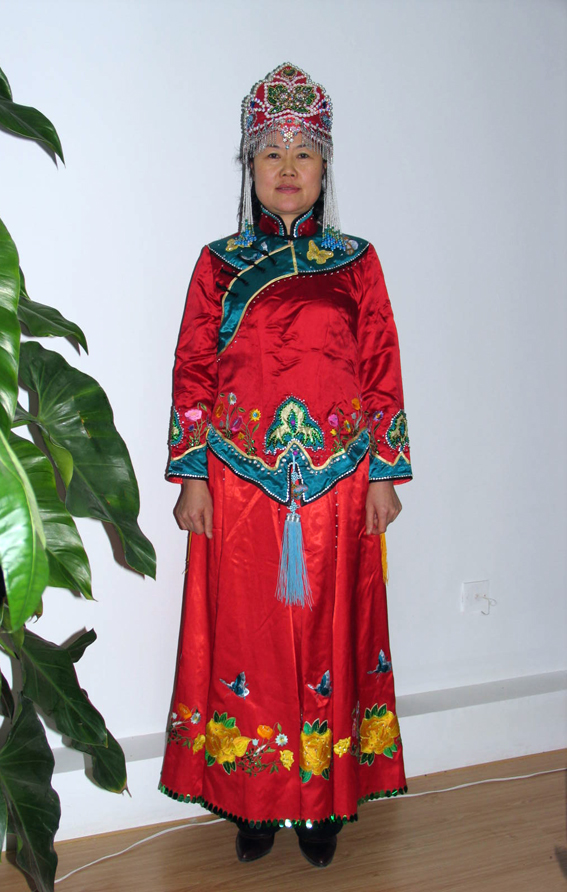 剛出嫁的女子的服飾要比少女的服飾更加艷麗,并且梳理的發(fā)型也會有所差異,媳婦梳的是“盤龍髻”,額前有“劉?!保X后有“燕尾”,頭頂上烏發(fā)蓬起,盤成髻形,日常生活中將辮梳成雙辮或兩“抓髻”,合起成為一個大“疙瘩髻”。頭發(fā)抹頭油,沒有頭油的,用榆樹皮泡的水也粘稠光亮。面部可以涂粉,口可以涂口紅,可以染指甲等。頭部髻上插著金簪,腕上佩帶金(銀、玉)手鐲。錫伯族已婚婦女一般都會穿戴耳環(huán)、手鐲、戒指等裝飾品。此外,錫伯人喜愛在褲子小腿處扎系黑色的綁腿帶子。綁腿帶視年齡也會有所不同,未出嫁的女子一般扎系紅色、粉紅色腿帶,而在舉行葬禮儀式時扎系白色的綁腿帶子。