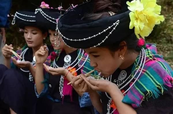 阿昌族以大米為主食,尤其喜歡食用大米制成的“米線”。他們喜歡吃腌臘肉、干牛肉以及腌菜、腌竹筍等酸性食品,還喜歡喝自釀的米酒和白酒。白酒用糯米飯加甜酒曲發(fā)酵制成,味道香甜可口、生津解渴、回味無窮。除此之外,阿昌族還有嚼煙的習慣。