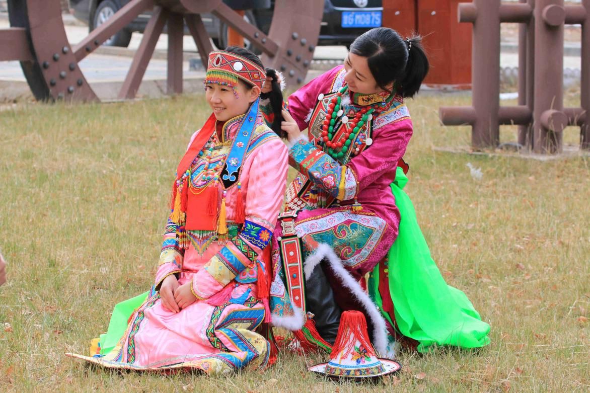 裕固族服飾大致可分為婦女服飾、未婚女子服飾和男子服飾三類。婦女服飾上有“衣領(lǐng)高、帽紅纓”的特征,婦女的帽子特點鮮明,東部各部落的婦女帽子形似禮帽,但頂部呈小圓頂形;西部各部落婦女帽頂則是尖頂,帽沿后部卷起。紅纓帽一般以芨芨草編織或羊毛搟制帽胚,用紅布做帽里,白布做帽面,帽沿為鑲有花紋的黑邊,帽頂配有紅纓,故稱“紅纓帽”。裕固族婦女服飾中的頭面是一件非常精制而價值昂貴的民間工藝品,用銀牌、珊瑚、瑪瑙、彩珠、貝殼等穿綴而成,共分三條,胸前左右兩條,背后一條。頭面也是裕固族已婚婦女和少女的區(qū)別標志,婦女出嫁成婚后方可戴頭面。裕固族男子服飾也有其獨特之處,頭戴金邊白氈帽,帽沿后邊卷起,身穿大領(lǐng)偏襟長袍,衣料大多以布、綢、緞或褐子、獸皮為主,扎彩色腰帶,佩有腰刀、火鐮、鼻煙壺、煙荷包等飾品。裕固族有專門的婚禮服飾,色彩和配飾都有一定的規(guī)矩和要求。