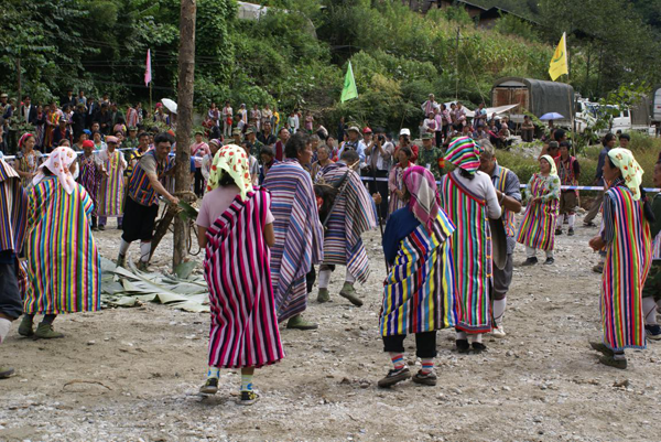 獨(dú)龍族的民歌民謠稱為“門竹”,是對(duì)調(diào)唱歌的主要形式,也是獨(dú)龍族生產(chǎn)生活中非常廣泛的一種藝術(shù)活動(dòng)。