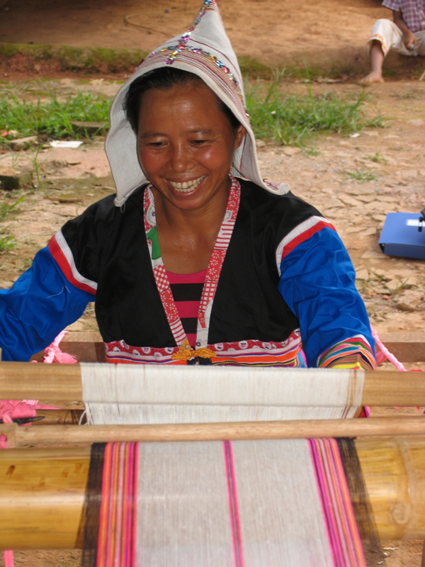 基諾族豎線花紋的衣料是獨具民族特色的基諾族織錦“砍刀布”。