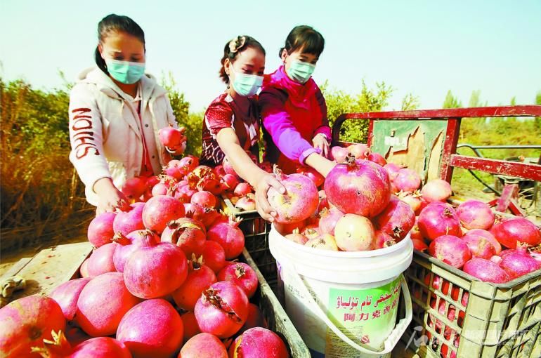 10月14日,庫(kù)車(chē)市烏尊鎮(zhèn)英吐?tīng)柎骞r(nóng)在分揀石榴。 今年,該鎮(zhèn)石榴獲得豐收,畝均增收有望達(dá)到6000元左右,種植石榴已成為果農(nóng)增收的重要渠道。 尼亞孜·熱合曼攝