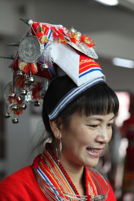瑤族支系眾多,大凡自稱不同,服裝則有異,在這里就簡單介紹幾種最具特色的瑤族服飾。自稱為“勉”(他稱“盤瑤”或“過山瑤”)的瑤族,分布廣,人口多,其服飾樣式最多。僅頭飾就有頂板、尖頭、平頭和包頭四種頭型。婦女服裝用藍(lán)靛染成的布土制成,腰部以上的兩邊衣襟繡有八至十種圖案。上衣無扣,用兩丈多長的黑布作腰帶,腰系圍裙,前胸掛銀牌、項(xiàng)鏈、周圍鑲有成串的紅絨球,頭纏精美的長條彩帶。男子穿著對(duì)襟布扣唐裝,以黑布包頭?!懊恪弊逑蛋伺努幍姆?,獨(dú)樹一幟。八排瑤男女頭上都插有一根或數(shù)根白翎,象征英雄殺敵的利劍。男女均穿無領(lǐng)無扣子琵琶式襟服,腰束布袋,褲長稍過膝。男子身上常背一個(gè)五顏六色的繡花挎袋,大都為情人所贈(zèng)之物。盛裝時(shí),全身上下佩戴精美銀飾,走路叮當(dāng)作響,甚是悅耳。婦女一般都喜歡佩戴耳環(huán)、手鐲、戒指、頸圈之類的器飾。器飾式樣多種,有的奇色異型,富有特點(diǎn)。