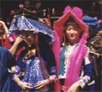 惠東女服飾文化源遠流長,其形成、發(fā)展過程一直是中外人類學、民俗學專家關注的課題。其來源有種種傳說,目前尚無定論。據(jù)史料記載,清代中后期,惠東婦女上穿黑色或紫色長袖挖襟衫,下穿黑色大折褲。衣長、胸、腰背寬闊,下沿稍呈弧形外展,與清代流行的“大夫衫”(長式挖襟衫)類似。不同的是袖口偏窄,袖子接長,故名“接袖衫”又名“卷袖衫”接袖的用意十分有趣,為的是讓新娘入洞房時提起長袖以遮掩一臉羞紅;過了3日,才在長袖一半處翻卷逢住固定。到了清未“接袖衫”各部分略為收縮,衣沿弧度加長,臂圍寬度加闊并向外彎展,腰圍處的中式紐攀減少,兩個連在一起,袖口繞藍布邊。領圍上刺繡圖案由簡變繁,領根下方形色布改為三角形。胸、背中線兩側綴做兩塊方形黑色、深褐色綢布,其四邊各鑲接一塊三色形色布,改稱“綴做衫”。褲子為“大折褲”又名“大筒褲”,俗稱“漢裝褲”。褲一般用黑色布,也有用藍色的。褲腳寬約1.2尺,褲頭約2尺,縫一道5寸的藍色布邊。其樣式從清代中后期至今沒有多大變化,惟質料由舊時用粗布,今天改為通用黑綢布?;輺|女服飾,歷來重視腰以上部分,特別以頭飾最為突出,花樣繁多,不同場合、不同年齡的頭飾有明顯區(qū)別。