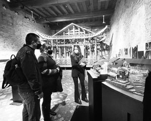 2021年5月,第17屆威尼斯國(guó)際建筑雙年展官方平行展“兩河口,一個(gè)土家會(huì)聚之地的再生”在威尼斯禪宮與宣恩縣兩河口村同時(shí)連線開幕。圖為威尼斯禪宮展覽現(xiàn)場(chǎng)。 閔天怡供圖
