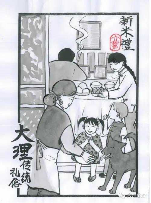 孩子們眼巴巴地看著阿奶阿媽在供桌前擺上已經(jīng)煮好的雞、魚和豬肉,呈上熱騰騰的新米飯,還敬茶、敬酒,跪拜禱告結束后,阿媽又從甑子里舀出一碗新米飯,拿到院子給大黑狗吃,說大黑看家護院勞苦功高。