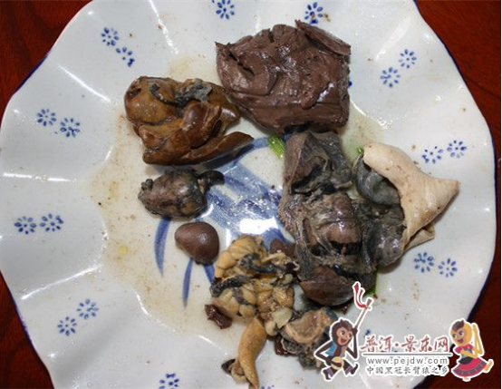 雞肉煮熟了,哪些該由誰吃,也挺講究。雞頭、雞卦一定要撿給同桌吃飯中年紀(jì)最長(zhǎng)、最受尊敬的男人,叫做“剝雞頭”、“看雞卦”;雞肝、雞血撿給年長(zhǎng)牙齒脫落的年長(zhǎng)者;雞翹、雞肚子、雞腸子由年輕主婦吃;女孩吃雞翅膀、男孩吃雞腿,說是女孩吃了翅膀會(huì)梳頭、會(huì)飛,男孩吃了雞腿力氣大。