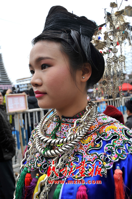 此外,侗族還有些極具民族特色的民族節(jié)日或活動。例如斗牛節(jié),一般在每年農(nóng)歷二月與八月的亥日舉行。侗族每個村寨幾乎都有為比賽而飼養(yǎng)的“水牛王”,“牛王”的圈稱為“生宮”?!芭M酢币话阌袑H孙曫B(yǎng),其吃的食物除了飼料,還有蜂蜜、豬油等,可見侗族人民對此的重視程度。還有“為也”,這是個音譯的名稱,是做客的意思,它特指村寨之間互相訪問的集體客人,這是侗鄉(xiāng)規(guī)模最大的社交和娛樂性活動,一般在春季或秋后舉行。貴州黎平、榕江、從江一帶的“為也”隊伍多以歌隊或戲班為主?;顒訁⑴c人數(shù)從10人到100人不等,男女老少皆可參加,場面十分熱鬧。與之類似的還有南侗地區(qū)的“為嘿”“為頂”“行歌坐月”等活動。“為頂”“行歌坐月”是村寨男女青年之間互訪、社交的活動。還有每年農(nóng)歷六月的第一個辰日“林王節(jié)”,是紀念侗族農(nóng)民起義軍領(lǐng)袖林寬的節(jié)日(圖為薩瑪節(jié)上盛裝的侗族姑娘。寧堅攝,引自民族畫報)。