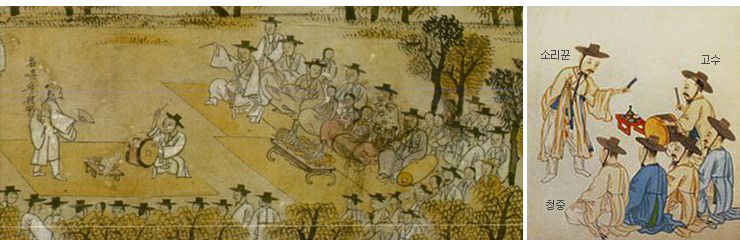 盤(pán)嗦哩通常由一人演唱,另一人用鼓伴奏。這種形式大約在18世紀(jì)中朝鮮王朝后期開(kāi)始出現(xiàn),19世紀(jì)末是它的黃金時(shí)代。關(guān)于它的起源有兩種不同的看法,一種認(rèn)為它是18世紀(jì)的游浪藝人根據(jù)某種戲劇創(chuàng)造的,另一種則認(rèn)為是來(lái)源于薩滿(mǎn)教儀式中的歌曲。盤(pán)嗦哩的故鄉(xiāng)是韓國(guó)全羅北道的南原,至今那里仍盛行這種演唱。