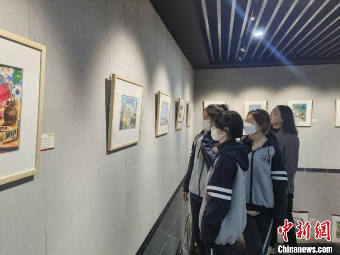 威海-韓國友城青少年繪畫展舉辦。 威海市外辦供圖