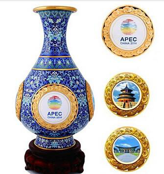 2014年APEC會議中,作為國禮饋贈給各經(jīng)濟體領導人的三件禮品中就有一件采用景泰藍工藝,以藏于北京故宮博物院的霽紅釉玉壺春瓶為原型,由中國七位國家級、北京市工藝美術大師聯(lián)手創(chuàng)作的《四海升平》景泰藍賞瓶。
