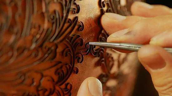 工藝美術大師米振雄堅持“景泰藍首要的是手工藝美,從打胎到磨光,都必須是手工藝”??此銎z,是一種安靜的欣賞。大師一邊用手指甲蓋抵住紫銅絲,另一只手抓著鑷子,拉長、彎折、回旋。如何拿捏花樣的形狀、掰出弧度大小,全憑師傅一雙巧手。