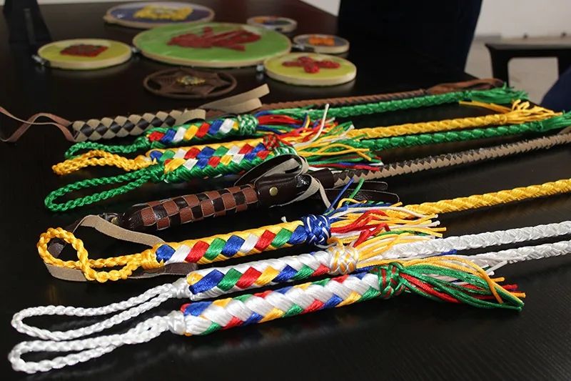 科爾沁繩結(jié)技藝是通遼市科爾沁區(qū)一項(xiàng)傳統(tǒng)民間技藝,它是從中國古老的繩結(jié)技藝發(fā)展而來,逐漸形成了自己的特色和體系,產(chǎn)生了《蒙古馬鞭》、《蒙古捕夢(mèng)網(wǎng)》等代表作品。作品主要來源于游牧民族生活中的日常實(shí)用,比如馬龍?zhí)?,馬鞭,固定蒙古包的綁繩,蒙古服的扣子等。2018年《結(jié)繩技藝》確定為盟市級(jí)非物質(zhì)文化遺產(chǎn)項(xiàng)目。近年來隨著國家對(duì)非物質(zhì)文化遺產(chǎn)的重視和大眾對(duì)于“中國結(jié)”的關(guān)注,科爾沁繩編又重新走入人們的視野??茽柷呃K編技藝傳承人經(jīng)過多年的研習(xí)和挖掘,創(chuàng)造了很多經(jīng)典作品,使這門古老的技藝煥發(fā)出新的光彩。