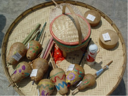 2010年上海世博會活動周期間,一臺名為《記憶云南》的18項非物質文化遺產展示成為最吸引眼球的亮點之一?;顒蝇F場,18名云南非物質文化遺產傳承人和民間藝人展示白族布扎、納西族東巴畫、傣族剪紙、傣族竹編、佤族織錦技藝等制作技藝。其間展示的傣族竹編技藝在民族文化風情濃郁,文化底蘊深厚的耿馬傣族佤族自治縣廣為流傳。俗話說傣族“無竹不成家”,自古以來,傣族就和竹子結下了不解之緣。傣家人生活地區(qū)大多竹資源豐富,他們在飲食上喜歡吃鮮竹筍和用竹筍腌制的酸筍,各種生活用具也多用竹制作而成。在翠竹掩映,綠色蔥籠的耿馬傣族村寨,傣家人尤其愛竹、用竹,并擅長竹編技藝,他們擅用竹子為材料搭橋、蓋屋,住的是竹樓,用的是各式自編的竹器,大至籬、墻、門、毯笆、竹筏、床、桌、柜、席,小至飯盒、帽、扁擔、簍、提籮、甑子、供桌、鼓凳等,無一不是用竹編織而成。有的竹編還鑲嵌五彩圖案,富麗堂皇,專供佛寺祭掃之用,而各種精美的竹編小物品則是男女青年表達愛情的信物。傣族竹編歷史悠久,世代相傳的竹編技藝,具有鮮明的民族特色。耿馬傣族竹編工藝精細,造型樸實大方,圖案變化美觀,制品種類繁多,是優(yōu)良的實用工藝,其中以笆蘿、飯盒、檳榔盒、提籮、供桌的竹器編織技術最有代表性。笆蘿是傣語,指的是一種掛在腰間的竹簍。笆蘿編織精巧,美觀適用,既是生產、生活用具,又是精致的裝飾品。傣族婦女身著輕盈飄逸民族服裝,腰系一只笆蘿,走動時笆蘿隨身輕松搖擺,顯得十分樸實、精干、健美、俊俏。更為珍愛之處在于,笆蘿是傣族青年男女間愛情的傳遞物。傣族男子從小學習竹編,人人都有一手精湛的竹編技藝,青年男子總是精心編織一只笆蘿送給自己心愛的姑娘,換回一個姑娘回贈的親手織繡的筒帕。所以編織笆蘿和織繡筒帕是傣族青年“編織愛情的技藝”。如果一個小伙子不會竹編,那么他就同姑娘不會織繡一樣,說明他沒有一雙勤勞靈巧的雙手,很難找到心愛的伴侶。耿馬傣族民間竹編漆器工藝歷史悠久,世代傳承其竹編漆器主要有貢桌和提籮,傣語稱“浪擺”和“撒毫”。 “撒毫”和“浪擺”是傣族群眾從事佛教活動時的必需用品,家家戶戶都備有一套。每到潑水節(jié)或開門節(jié)、關門節(jié)時,傣家老人用“撒毫”裝各種禮佛用品,子女們則用“浪擺”和“撒毫”給父母送齋飯。平時則置于高處,不能亂放東西。僅“撒毫”的制作流程,便可分為選竹、破篾、編制、裝飾等10道工序,裝飾工藝獨特精美,集實用性和觀賞性于一體。由于傣族人民篤信佛教,竹器漆制品較多裝飾荷花、魚、蝴蝶等圖案,寓意祈求佛祖保佑,賜福予人風調雨順、吉慶有余。傣家竹編,既為人們生產生活所必需,也給人美的享受,真是民族工藝百花園的一朵奇葩。