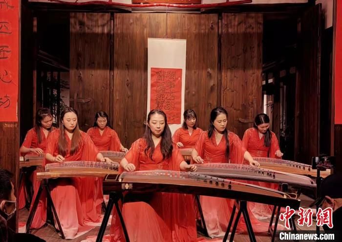 當(dāng)晚,樂(lè)聲在福州市鼓樓區(qū)朱紫坊集賢賓藝文古厝悠揚(yáng)而出,信步于古巷中的游人聽(tīng)聞樂(lè)聲,不由得駐足傾聽(tīng)。此次活動(dòng)由鼓樓區(qū)文化館主辦,集賢賓藝文古厝承辦,八閩箏團(tuán)作為演出單位參與其中。