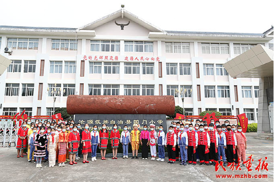 云南省臨滄市滄源佤族自治縣國(guó)門小學(xué)是一所位于中緬邊境線上的縣直小學(xué),創(chuàng)辦于1937年2月,曾四易校址,六更校名。學(xué)?,F(xiàn)有38個(gè)教學(xué)班,在校學(xué)生1668人,其中少數(shù)民族學(xué)生1172人。在開展民族團(tuán)結(jié)進(jìn)步教育工作中,滄源佤族自治縣國(guó)門小學(xué)以社會(huì)主義核心價(jià)值觀為引領(lǐng),以德育工作為抓手,充分發(fā)揮少先隊(duì)組織的作用,形成了以學(xué)校為龍頭、家庭為基礎(chǔ)、社會(huì)為平臺(tái)的民族團(tuán)結(jié)育人團(tuán)隊(duì)。