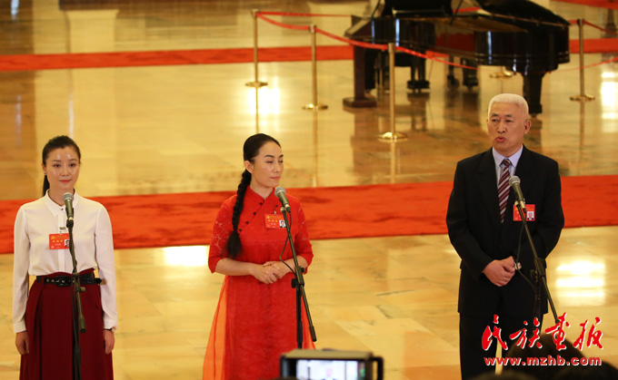 中國(guó)共產(chǎn)黨第十九次全國(guó)代表大會(huì)代表徐俊在北京人民大會(huì)堂接受采訪時(shí)發(fā)言( 滕俊 攝影)