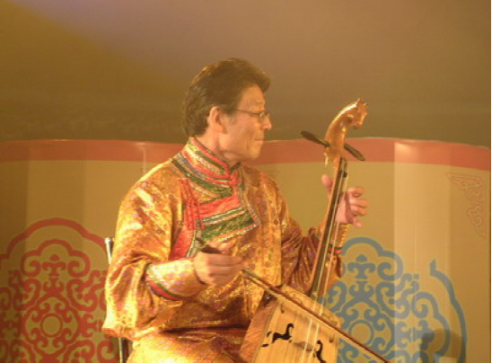 若西戈瓦在“烏蘭杯”第三屆中國(guó)蒙古族服裝服飾藝術(shù)節(jié)閉幕會(huì)上演奏《萬(wàn)馬奔騰》