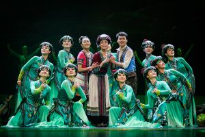 在舞劇敘事方式上,總導演之一董華興將民族性與現(xiàn)代性相融合,嘗試時空切換,段落重組,故事情節(jié)的倒敘、插敘,真實性與虛擬性相結(jié)合等方法。“音樂制作、舞蹈語匯、服裝設(shè)計等方面都要符合當?shù)厝罕姷纳?,接地氣老百姓才會喜歡?!薄缎腋;ㄉ健房倢а葜获R文靜說。