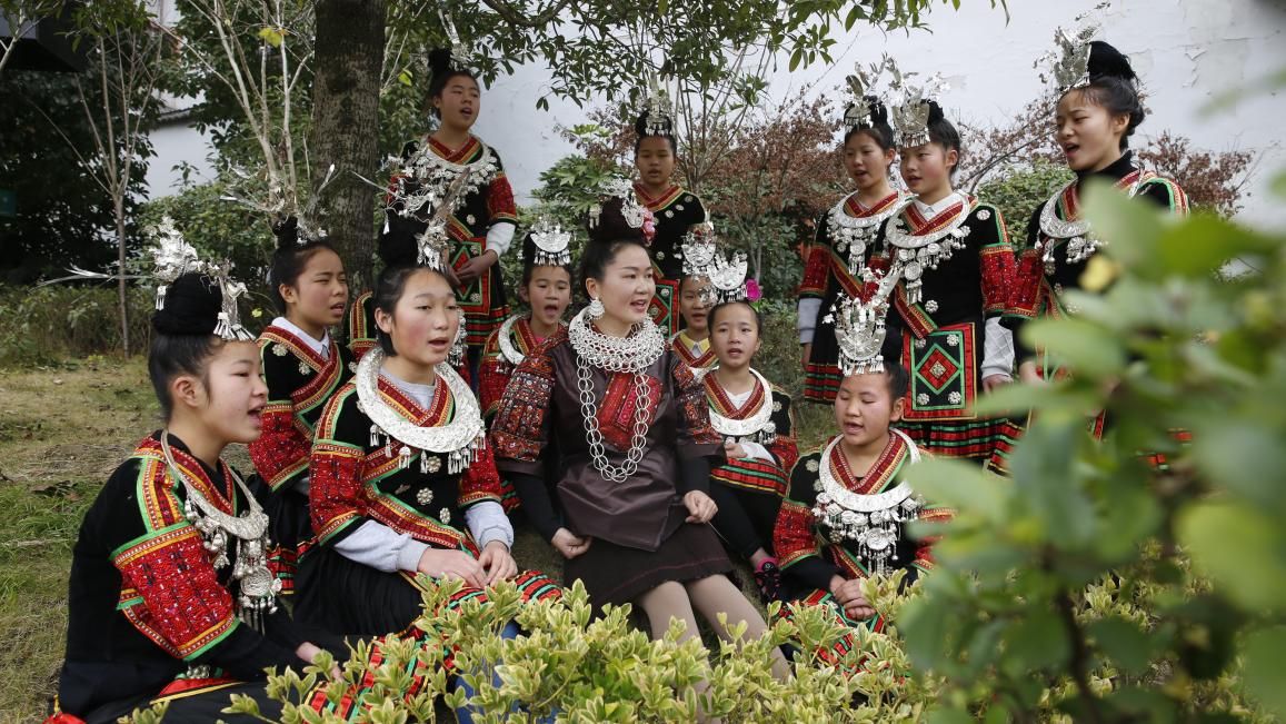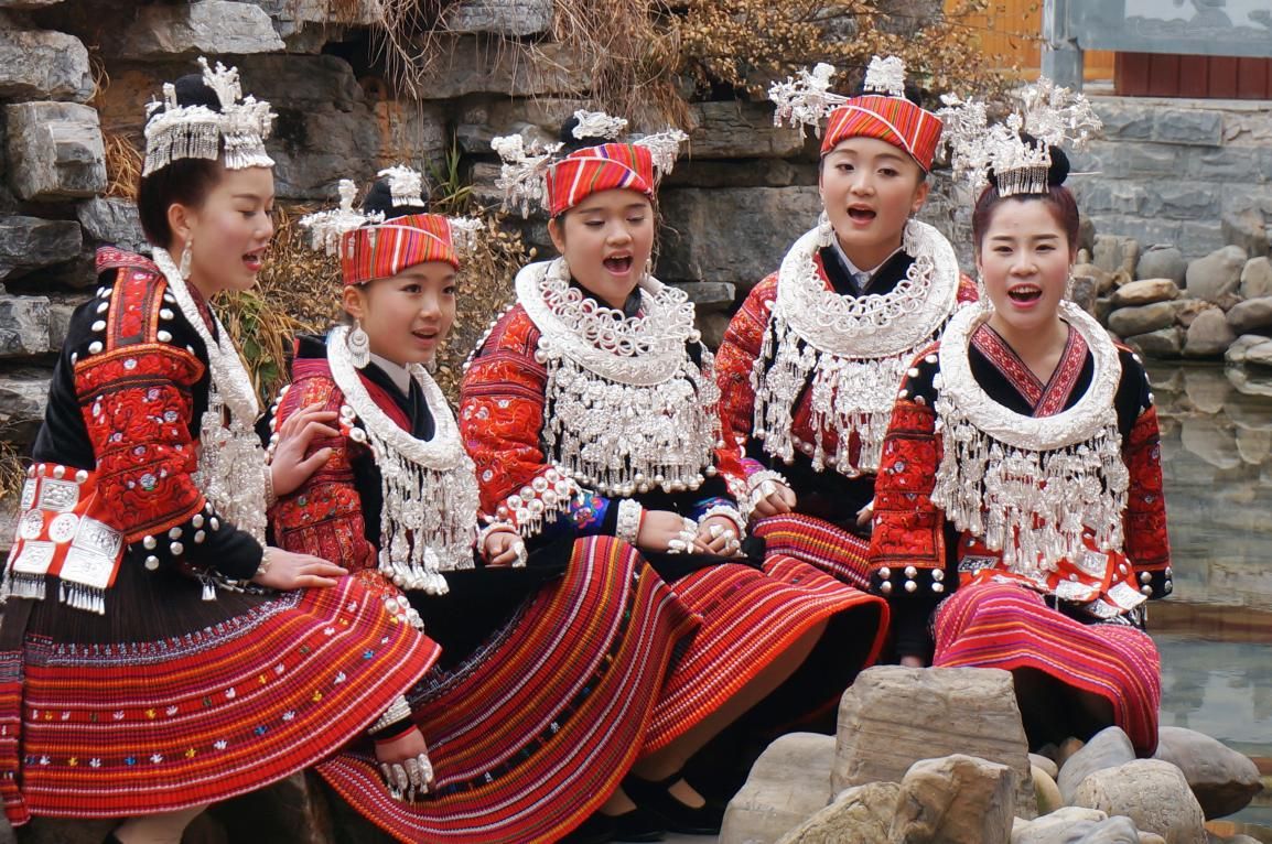苗族飛歌以劍河革東鎮(zhèn)所在地的飛歌最為優(yōu)美。因?yàn)楦咭舨糠秩渴褂谜嫔ぐl(fā)音,音調(diào)高亢嘹亮,豪邁奔放,曲調(diào)明快,穿透力強(qiáng),有很強(qiáng)的感染力,唱起來聲振山谷,山鳴谷應(yīng),幾里外都能聽到。演唱的場(chǎng)合可在酒場(chǎng)上唱,可在“游方場(chǎng)”(青年男女談情說愛的場(chǎng)所)上唱,也可在山澗田野忙農(nóng)活或是游玩時(shí)演唱。