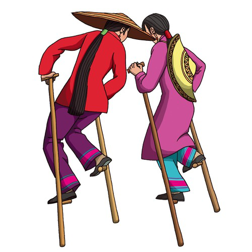 京族(高蹺):京族有18915人,聚居在廣西防城市的澫尾、巫頭、山心三島。京族傳統(tǒng)競技活動多與濱海文化生態(tài)環(huán)境有關,傳統(tǒng)體育項目有捉活鴨、摸鴨蛋、跳竹杠、舞花棍、頂頭、捉貝、走田、趕狗占窩等。
