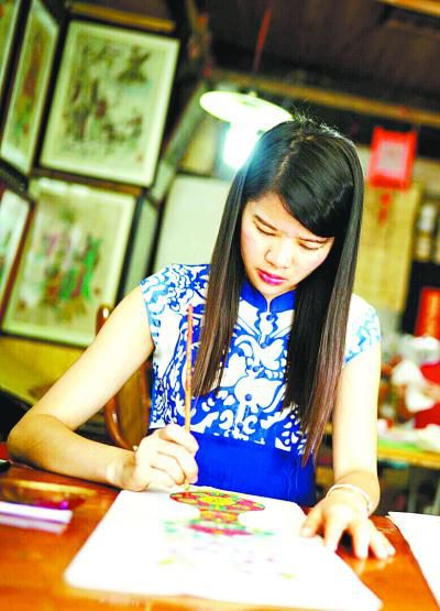復(fù)業(yè)后,年畫鋪的生意和馮炳棠的生活一樣平平淡淡。直到2014年,一位活潑開朗的姑娘的到來(lái),百年老鋪煥發(fā)了新的活力。這位姑娘正是劉鐘萍。