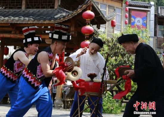 毛方明的父親毛開(kāi)善告訴中新社記者,土家族撒葉兒嗬以前只在白事期間進(jìn)行表演,如今隨著時(shí)代變化,已逐漸趨于常態(tài)化。