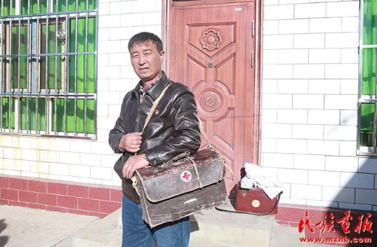 一只老式的皮藥箱、一匹馬、一個裝滿藥的馬褡子、一件綁在馬鞍后的皮大衣,見證了居馬泰·俄白克的牧區(qū)醫(yī)生生活,他那風(fēng)塵仆仆的身影在包扎墩牧區(qū)已經(jīng)成為牧民們眼中最美的身影。