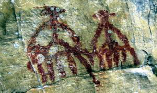 值得一提的是巖畫中的個(gè)體人物幾乎人人頭頂都有一支羽毛狀的頭飾,背上掛有披肩,類似今天的苗族傳統(tǒng)服飾,其中的頭飾藝術(shù)使得這里的巖畫充滿了躍動的生命感。巖畫色彩是純一色的紅色,視覺沖擊力極強(qiáng),這里的巖畫圖像都充滿著愉快的生活氣息,呈現(xiàn)出一股浪漫主義的藝術(shù)風(fēng)格。這些巖畫表現(xiàn)出強(qiáng)烈的寫實(shí)風(fēng)格和民族風(fēng)格,生動、形象地記載、反映了當(dāng)時(shí)人民的生活狀況、生產(chǎn)力水平和宗教信仰等,整個(gè)巖畫群完全如同一部記載民族風(fēng)情的史書,反映了遠(yuǎn)古先民進(jìn)入貴州、拓土興邦的歷史,是填補(bǔ)貴州歷史空白的重要史料。