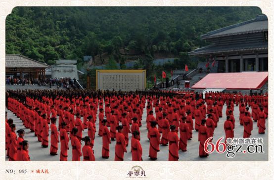 孔學(xué)堂背倚大將山,俯瞰花溪河,建筑面積12萬平方米。一期工程于2011年7月3日奠基,2012年9月28日即孔子誕辰2563周年紀(jì)念日落成揭幕;二期工程于2013年10月開工,將于2014年11月竣工。