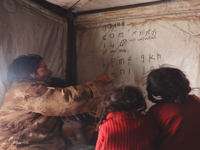 圖片說明:野保員在家教女兒漢語拼音